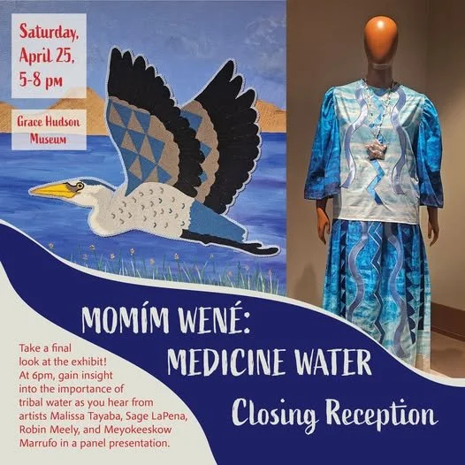 Take a final look at Momím Wené: Medicine Water before it winds its way to its next location. At 6:00 PM, gain insight into the importance of water as you hear from artists Malissa Tayaba, Sage LaPena, Robin Meely, and Meyokeeskow Marrufo in a panel presentation. They will talk about their artwork and water advocacy.